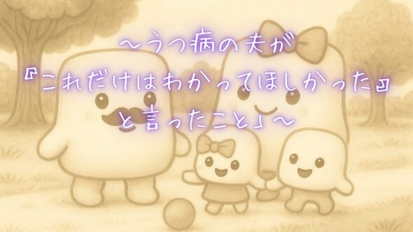 鬱生活 夫のうつ病、子どもにどう伝えたか|実際に使った言葉と反応 夫がうつ病になったとき、子どもにどう伝えるか悩みました。実際に使った言葉や会話、子どもの反応、伝えてよかったこと・反省点を体験談としてまとめています。家族で向き合った記録です。 子育て鬱生活