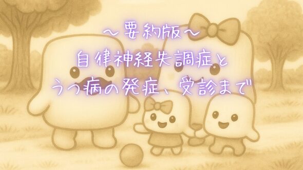 鬱生活 要約版:自律神経失調症とうつ病の発症 — 初期症状と気づきまとめ 原因不明の体調不良が続く人へ。自律神経失調症とうつ病の違い、初期症状、受診の目安を実体験をもとに要約で解説。詳しい経過は本文リンクへ。 鬱生活