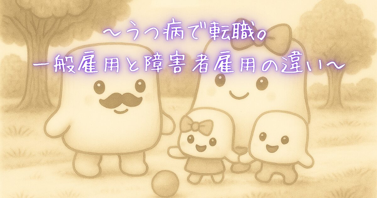 うつ病で転職を繰り返している本人や、その家族で「一般雇用と障害者雇用、どちらがいいのか」と悩んでいる方に向けて書いています。